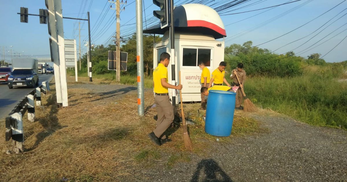 งานจราจร สภ.แสนภูดาษ ร่วมปรับปรุงพัฒนาบริเวณจุดบริการประชาชนแยกประเวศ