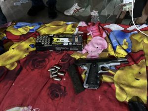 1 นายสมยศ ประเสริฐ อายุ 54 ปี อยู่บ้านเลขที่ 4 หมู่ 2 ต.คลองประเวศ อ.บ้านโพธิ์ จ.ฉะเชิงเทรา หมายเลขบัตรประชาชน – (ผู้ต้องหา) ในฐานความผิด “มีอาวุธปืนพร้อมเครื่องกระสุนปืนไว้ในความครอบครองโดยไม่ได้รับอนุญาต” ของกลาง 1.อาวุธปืนพกสั้นกึ่งอัตโนมัติ (ประดิษฐ์เอง) ขนาด .45 มม.