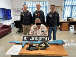 1 นายสมยศ ประเสริฐ อายุ 54 ปี อยู่บ้านเลขที่ 4 หมู่ 2 ต.คลองประเวศ อ.บ้านโพธิ์ จ.ฉะเชิงเทรา หมายเลขบัตรประชาชน – (ผู้ต้องหา) ในฐานความผิด “มีอาวุธปืนพร้อมเครื่องกระสุนปืนไว้ในความครอบครองโดยไม่ได้รับอนุญาต” ของกลาง 1.อาวุธปืนพกสั้นกึ่งอัตโนมัติ (ประดิษฐ์เอง) ขนาด .45 มม.
