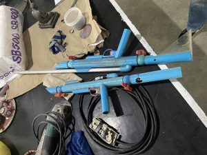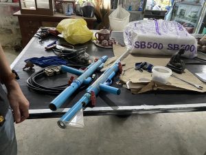 5.อาวุธปืนยาวแบบประดิษฐ์เอง(อัดลม) จำนวน 2 กระบอก รวมลูกกระสุนปืน ขนาด .45 จำนวน 26 ลูก