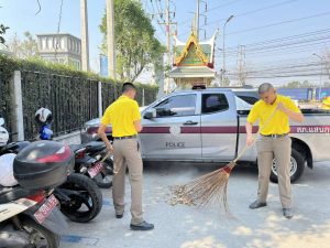 –ร่วมกันดำเนินการปรับภูมิทัศน์(เก็บ กวาด เศษขยะ ใบไม้ ฉีดน้ำทำความสะอาด) บริเวณโดยรอบสถานีตำรวจภูธรแสนภูดาษ