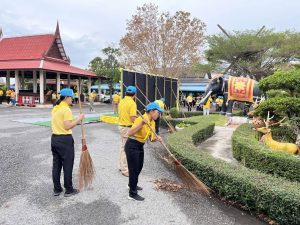 –ร่วมกันดำเนินการปรับภูมิทัศน์(เก็บ กวาด เศษขยะ ใบไม้ ฉีดน้ำทำความสะอาด) บริเวณโดยรอบ พิพิธภัณฑ์พื้นบ้านวัดเทพราช