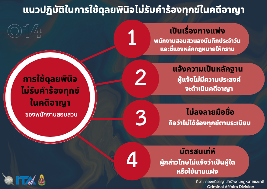 คู่มือแนวปฎิบัติในการใช้ดุลยพินิจไม่รับคำร้องทุกข์ในคดีอาญา
