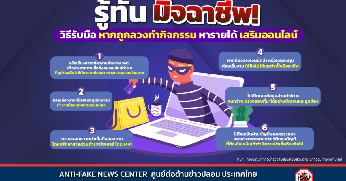 3. ให้ปรึกษาสายด่วนของตำรวจไซเบอร์ ที่หมายเลข 1441 เพื่อปรึกษาว่างานดังกล่าวเป็นมิจฉาชีพหรือไม่