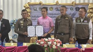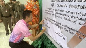 พร้อมด้วยเครือข่ายภาคีผู้นำชุมชน ประชาชน ร่วมพิธีเปิดโครงการชุมชนบำบัดอย่างยั่งยืน พื้นที่แพร่ระบาดยาเสพติดตามนโยบายเร่งด่วนของรัฐบาล และลงนามบันทึกข้อตกลงร่วมมือ (MOU) การป้องกันและแก้ไขปัญหายาเสพติดในหมู่บ้านพื้นที่เป้าหมายบ้านคลองแขวงกลั่น ม.1 ต.เกาะไร่ อ.บ้านโพธิ์ จ.ฉะเชิงเทรา