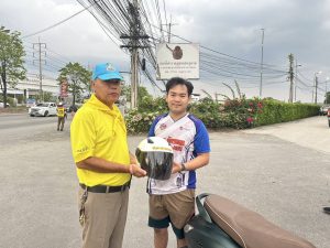 6.การปฏิบัติ/รายละเอียดกิจกรรม : อำนวยความสะดวกด้านการจราจร มอบหมวกนิรภัย แนะนำเส้นทาง แจกแผ่นพับประชาสัมพันธ์รณรงค์การขับขี่ปลอดภัย เมาไม่ขับ