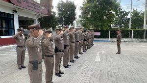 นำข้าราชการตำรวจสถานีตำรวจภูธรแสนภูดาษ เคารพธงชาติ ตรวจระเบียบเครื่องแต่งกายทรงผม และสักการะบูชาสิ่งศักดิ์สิทธิ์ประจำ สภ. และอ่านสารจาก ผบ.ตร. เนื่องในวันสถาปนาตำรวจ 17 ต.ค. 66