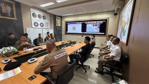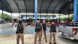 2.ตรวจสอบกำลังพล ตรวจอาวุธปืน ,โล่หมี, เสื้อเกราะกันกระสุน พร้อมอุปกรณ์ต่าง ๆ ในการปฏิบัติหน้าที่เผชิญเหตุกรณีคนร้ายมีอาวุธปืน