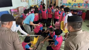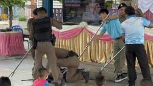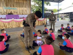 6.ได้ร่วมกับคณะครูประกอบกำลังฝึกซ้อมยุทธวิธีการใช้ไม้ง่ามจับกุมคนร้าย