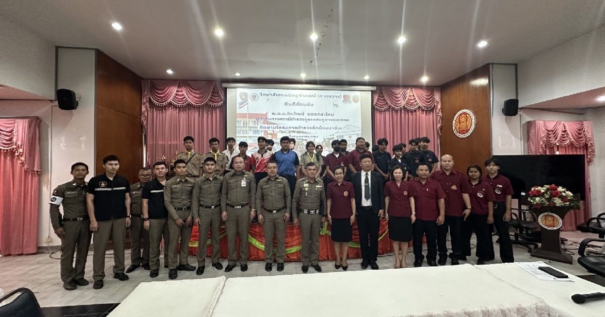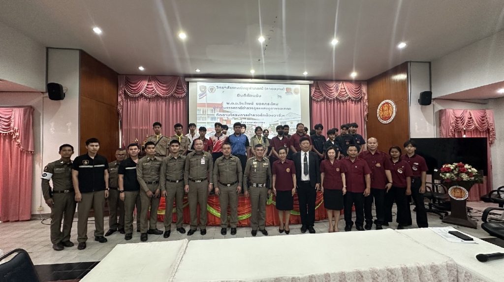 ()พ.ต.อ.จิรวัฒน์ ยอดกระโหม ผกก.สภ.แสนภูดาษ พร้อมด้วยข้าราชการตำรวจ ตามโครงการตำรวจรักน้องอาชีวะ ()นางเวฬุรีย์ อุปถัมภ์ ผอ.วิทยาลัยเทคนิคจุฬาภรณ์ (ลาดขวาง) นายทำเนียบ เชื้ออุ่น รอง ผอ.ฯ