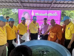 -ร่วมกันปล่อยปลาเป็นพระราชกุสล บริเวณ ท่าน้ำวัดประเวศรัตนาราม