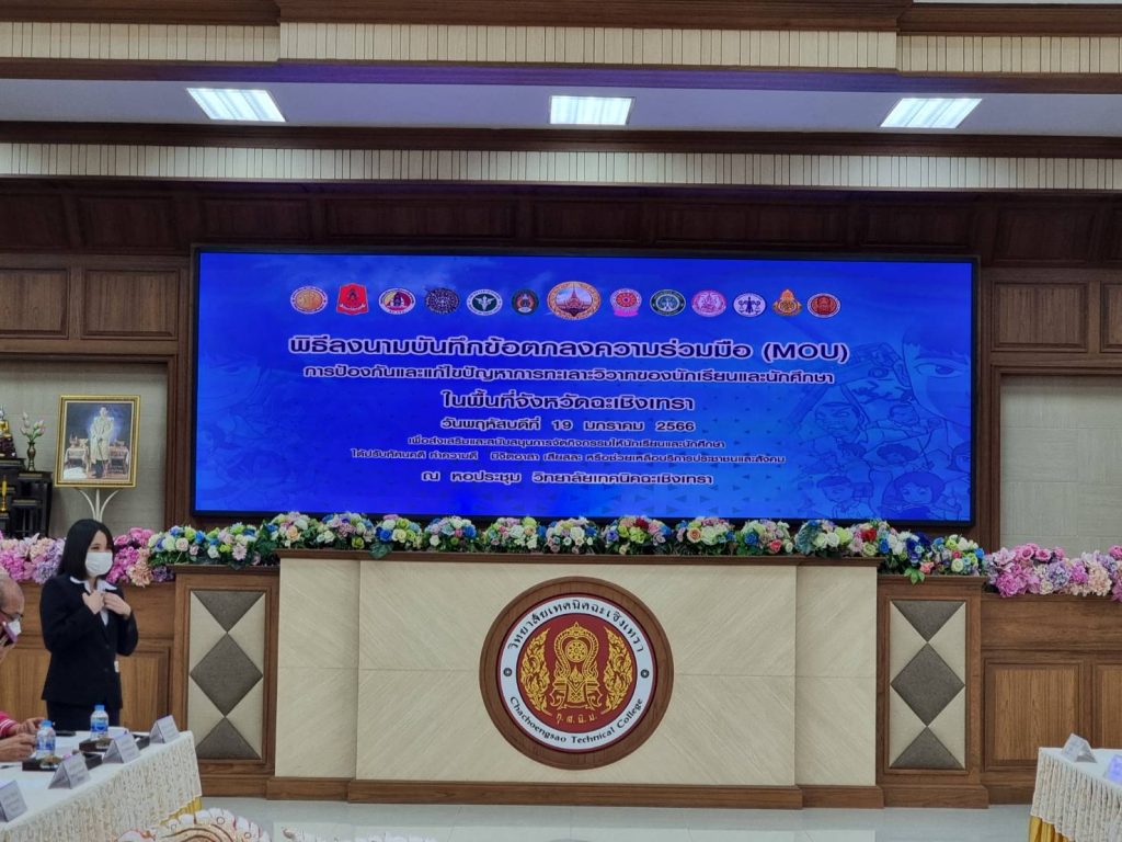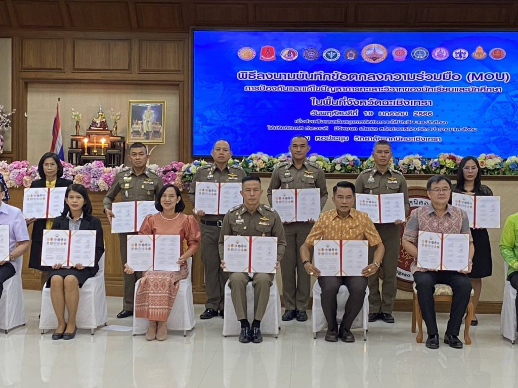 ร่วมลงนามบันทึกข้อตกลงความร่วมมือ (MOU) การป้องกันและแก้ไขปัญหา การทะเลาะวิวาทของนักเรียนและนักศึกษาในพื้นที่จังหวัดฉะเชิงเทรา
