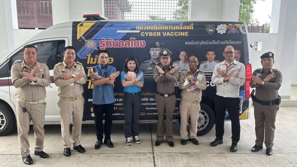 ในส่วนของสภ.แสนภูดาษได้จัดบู๊ทหน่วยไซเบอร์วัคซีนเคลื่อนที่เข้าร่วม ตามโครงการ “ผนึกกำลังร่วมใจ ต้านภัยไซเบอร์ ไม่เชื่อ ไม่รีบ ไม่โอน รู้ทันกลโกง”
