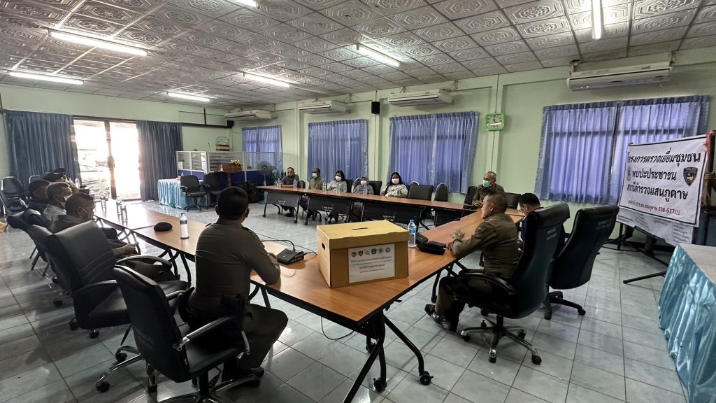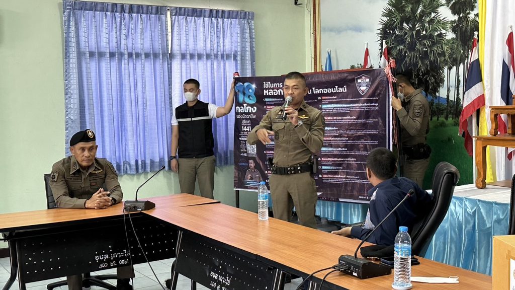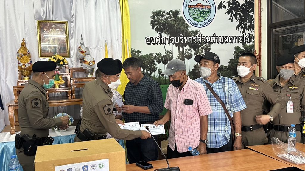 วันที่ 31 ม.ค.66 เวลา 10.00 น. ณ ห้องประชุม อบต.เกาะไร่ พ.ต.อ.จิรวัฒน์ ยอดกระโหม ผกก.สภ.แสนภูดาษ ,พ.ต.ท.การกฤศ กาญจนสุวรรณ รองผกก ป.ฯ, พ.ต.ต กฤษณศักดิ์ ไชยป้อ สวป.ฯ ,ร.ต.อ.ไพรัตน์ อับดิน รอง สว.(จร.)ฯ ชุด ชมส.สภ.แสนภูดาษ ตำรวจรับผิดชอบหมู่บ้าน นายสุรเชษฐ์ ยะโกบี กำนัน ต.เกาะไร่ คณะกรรมการหมู่บ้าน บ้านคลองสวน