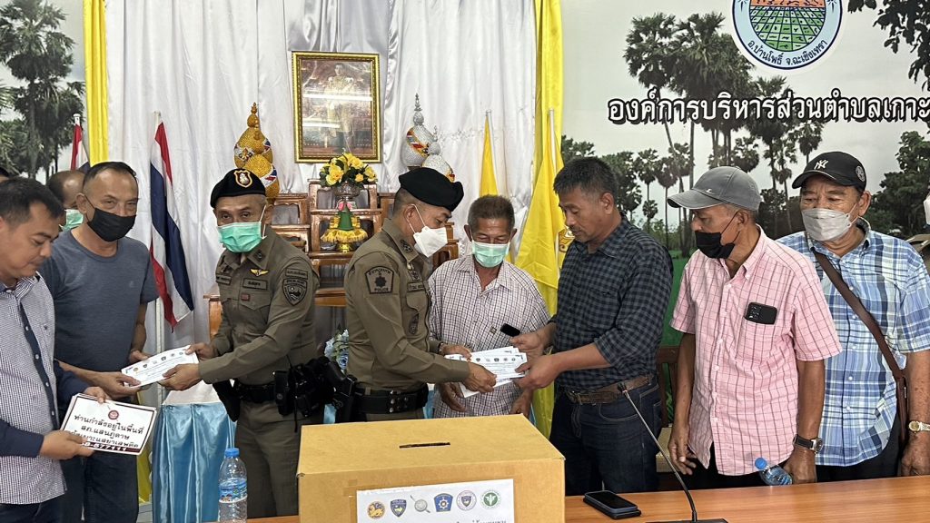 ออกพบปะผู้นำชุมชน ประชาชน บ้านคลองสวน ม.4 ต.เกาะไร่ อ.บ้านโพธิ์ จ.ฉะเชิงเทรา ตามโครงการ”ตรวจเยี่ยมชุมชน พบปะประชาชน” ให้ความรู้กับชุมชน ดังนี้