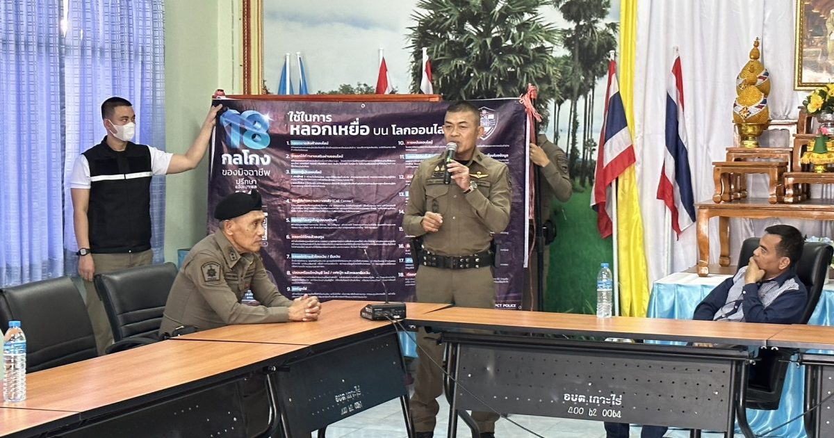 วันที่ 31 ม.ค.66 เวลา 10.00 น. ณ ห้องประชุม อบต.เกาะไร่ พ.ต.อ.จิรวัฒน์ ยอดกระโหม ผกก.สภ.แสนภูดาษ ,พ.ต.ท.การกฤศ กาญจนสุวรรณ รองผกก ป.ฯ, พ.ต.ต กฤษณศักดิ์ ไชยป้อ สวป.ฯ ,ร.ต.อ.ไพรัตน์ อับดิน รอง สว.(จร.)ฯ ชุด ชมส.สภ.แสนภูดาษ ตำรวจรับผิดชอบหมู่บ้าน นายสุรเชษฐ์ ยะโกบี กำนัน ต.เกาะไร่ คณะกรรมการหมู่บ้าน บ้านคลองสวน