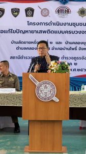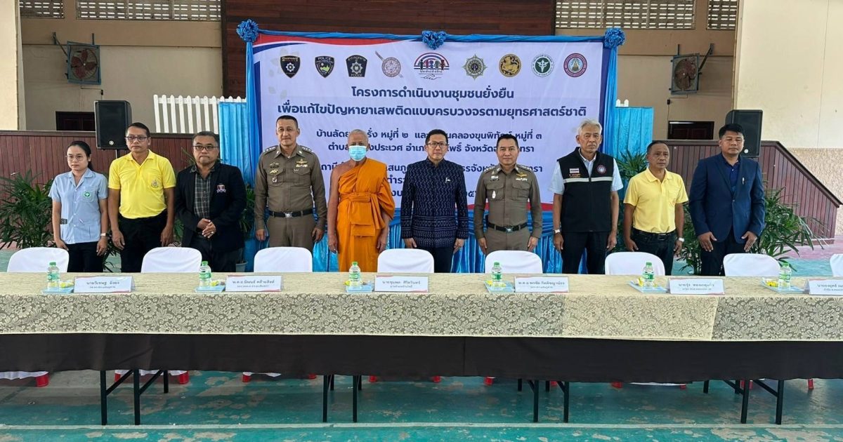 สภ.แสนภูดาษ เปิดโครงการชุมชนยั่งยืนเพื่อแก้ไขปัญหายาเสพติดแบบครบวงจรตามยุทธศาสตร์ชาติ ประจำปีงบประมาณ 2568 บ้านคลองลัดยายหรั่ง ม.2 และ บ้านคลองขุนพิทักษ์ ม.3 ต.คลองประเวศ อ.บ้านโพธิ์ จ.ฉะเชิงเทรา