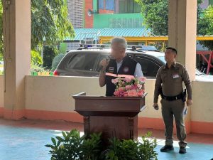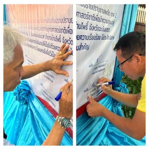 ⏺︎นายชุมพล ศิริครินทร์ นายอำเภอบ้านโพธิ์ ประธานในพิธีเปิดโครงการชุมชนยั่งยืน