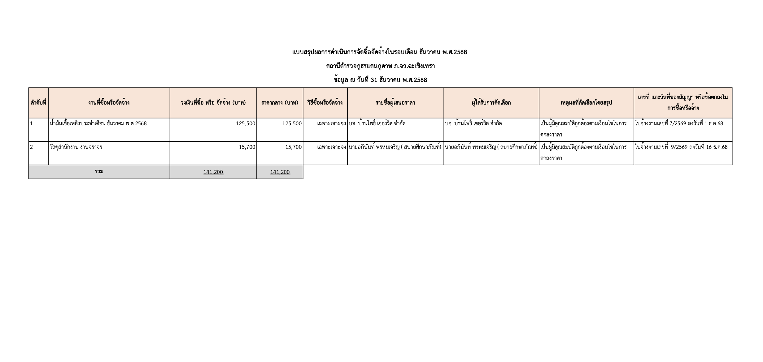 สรุปจะซื้อจัดจ้าง ประจำเดือน ธันวาคม พ.ศ. 2568