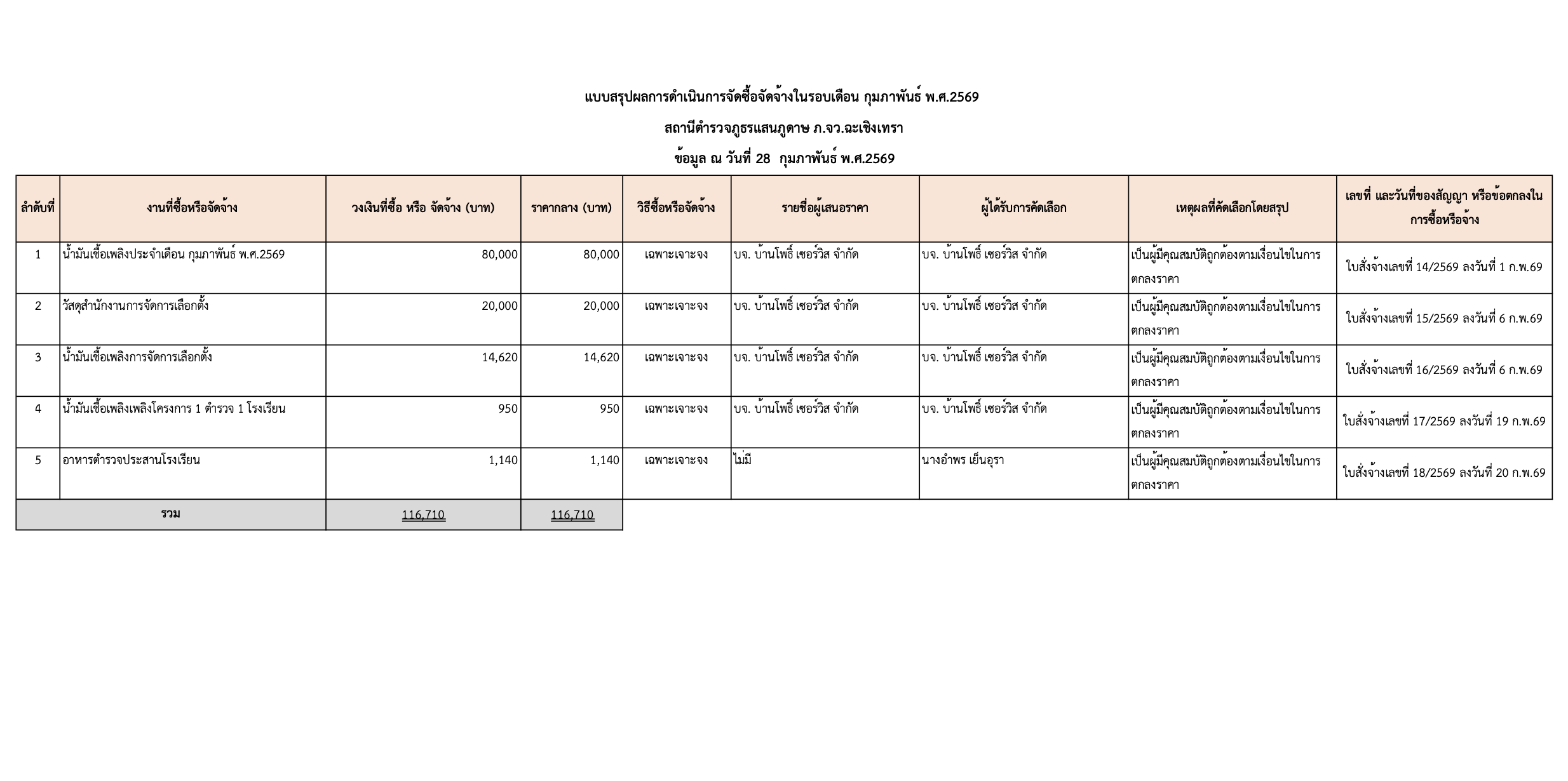 สรุปผลการจัดซื้อจัดจ้าง ประจำเดือน กุมภาพันธ์ พ.ศ.2569