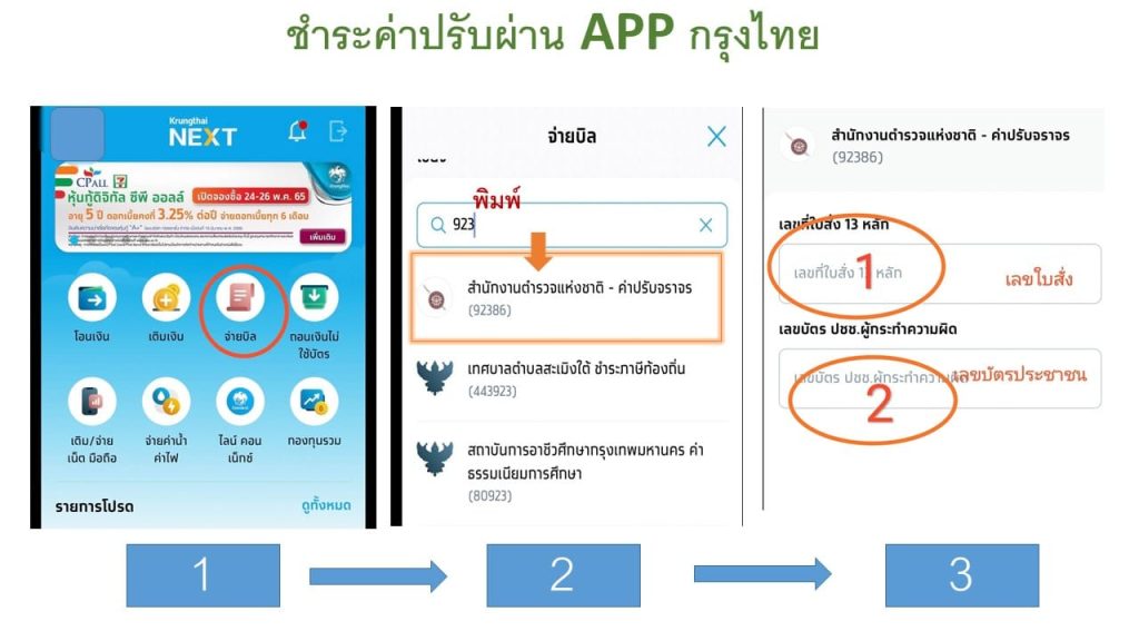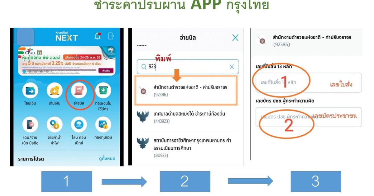 หลังจากได้รับใบสั่งไป 1วัน ท่านสามารถชำระค่าปรับผ่านApp กรุงไทยได้ครับ