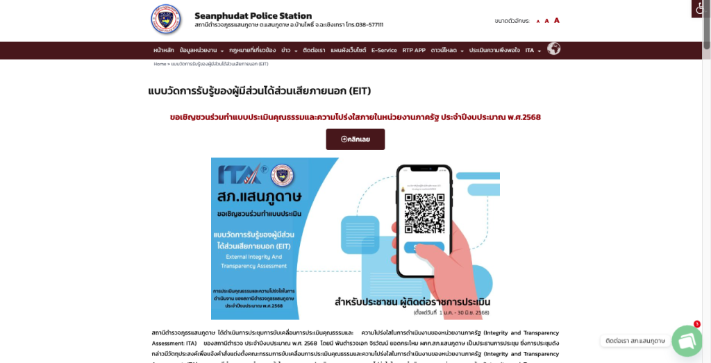 สถานีตำรวจภูธรแสนภูดาษ ได้ดำเนินการประชุมการขับเคลื่อนการประเมินคุณธรรมและ ความโปร่งใสในการดำเนินงานของหน่วยงานภาครัฐ (Integrity and Transparency Assessment: ITA) ของสถานีตำรวจ ประจำปีงบประมาณ พ.ศ. 2569 โดยมี พันตำรวจเอก พรชัย กิตติชญาน์ธร ผกก.สภ.แสนภูดาษ เป็นประธานการประชุม ซึ่งการประชุมดังกล่าวมีวัตถุประสงค์เพื่อแจ้งคำสั่งแต่งตั้งคณะกรรมการขับเคลื่อนการประเมินคุณธรรมและความโปร่งใสในการดำเนินงานของหน่วยงานภาครัฐ (Integrity and Transparency Assessment: ITA) ของสถานีตำรวจ และทำความเข้าใจ กรอบการประเมินคุณธรรมและความโปร่งใสในการดำเนินงานของหน่วยงานภาครัฐ (Integrity and Transparency Assessment: ITA) ของสถานีตำรวจ ประจำปีงบประมาณ พ.ศ. 2569 ประกอบด้วย 3 ประเด็นสำคัญ