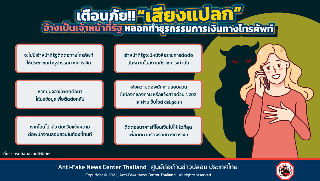 เตือนภัย!! “เสียงแปลก” อ้างเป็นเจ้าหน้าที่รัฐ หลอกทำธุรกรรมการเงินทางโทรศัพท์