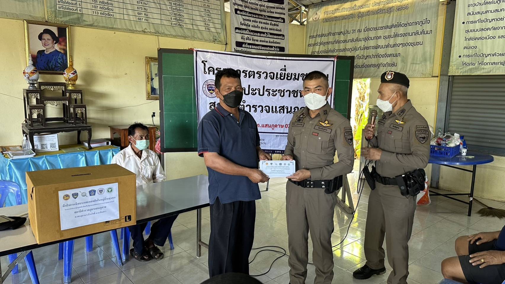 สภ.แสนภูดาษ ออกพบปะผู้นำชุมชน ประชาชน บ้านคลองจระเข้น้อย ม.2 ต.เกาะไร่ อ.บ้านโพธิ์ จ.ฉะเชิงเทรา ตามโครงการตรวจเยี่ยมชุมชน พบปะประชาชน