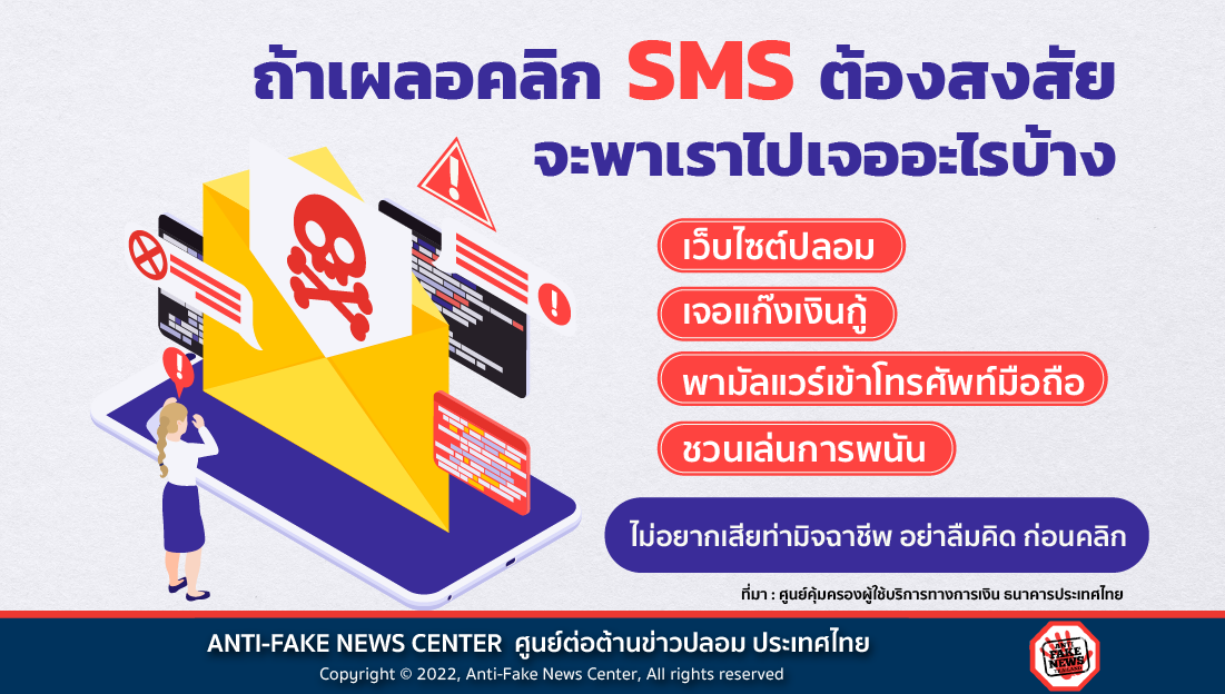 เมื่อมี SMS เด้งเข้ามาที่โทรศัพท์ พร้อมคำเชิญชวนที่ไม่น่าเชื่อถือ และมีข้อความที่เกินความเป็นจริง ให