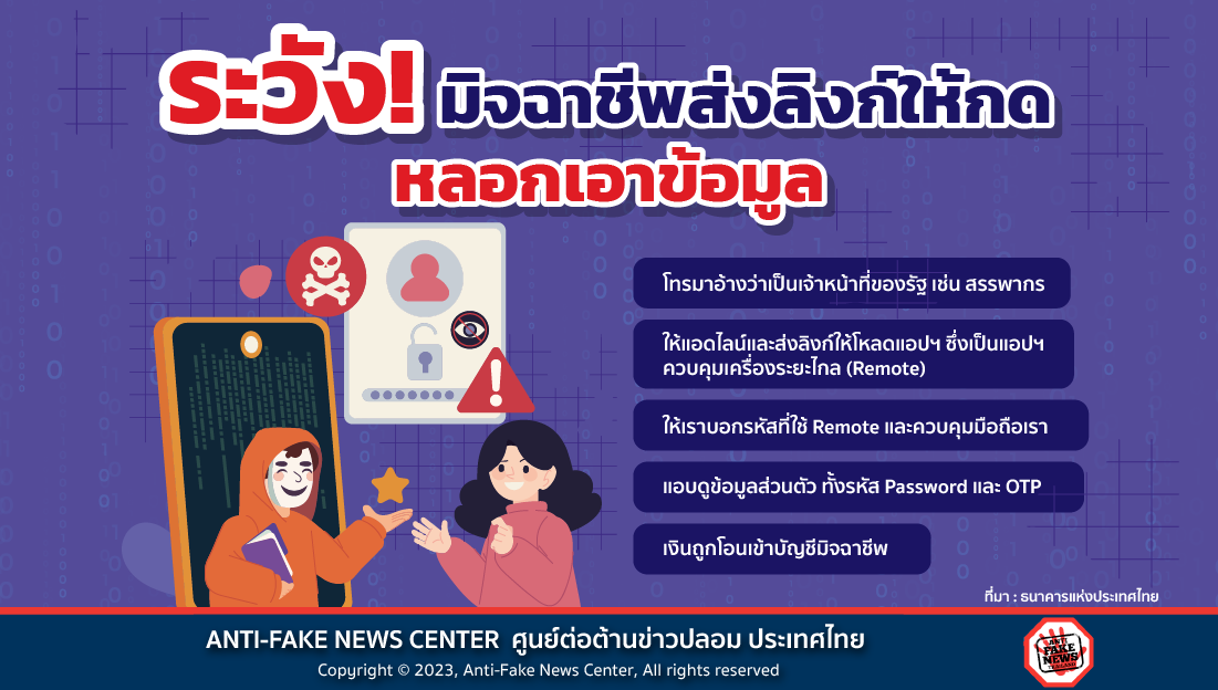 ช่วงนี้มิจฉาชีพแอบอ้างเป็นเจ้าหน้าที่ของรัฐ บอกให้แอดไลน์และคลิกลิงก์บนหน้าเว็บไซต์ปลอม เพื่อหลอกดาว