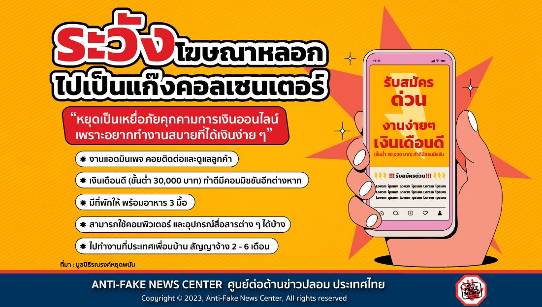 ใครที่กำลังหางานอยู่ควรตรวจสอบข้อมูลให้ละเอียดถี่ถ้วน เพราะงานง่าย ๆ ได้เงินดี อาจต้องกลายเป็นโจรโดย