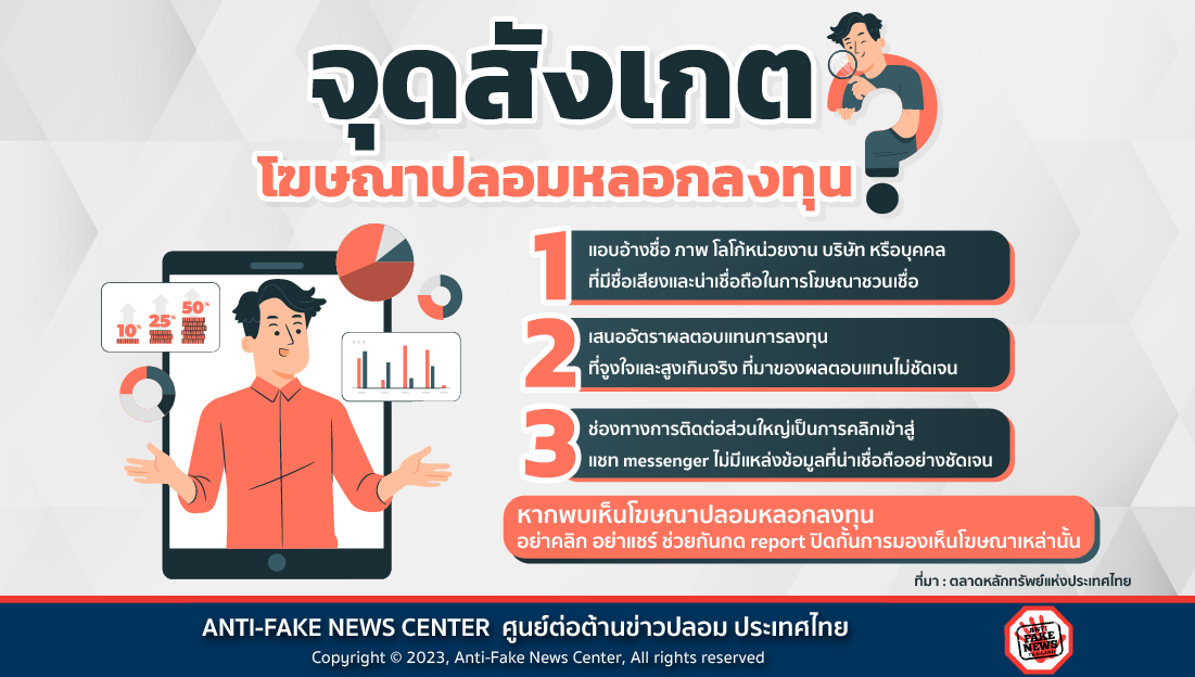 ปัจจุบันมักจะมีข่าวหลอกลงทุนหลากหลายรูปแบบ และมีคนสูญเงินไปไม่น้อย มิจฉาชีพมักจะมีข้อเสนอจูงใจชวนให้