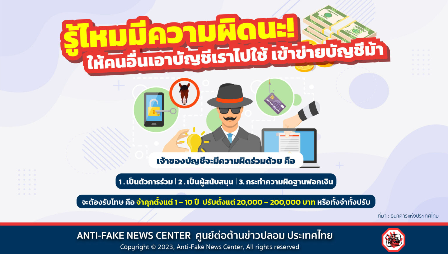 หากรับจ้างเปิดบัญชีม้า จะมีความผิดทางกฎหมาย เพราะเป็นช่องทางที่มิจฉาชีพใช้รอรับเงินที่หลอกมาจากเหยื่