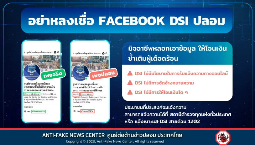 มีผู้ไม่ประสงค์ดี สร้างเพจเฟซบุ๊กในชื่อศูนย์ช่วยเหลือลูกหนี้และประชาชนที่ไม่ได้รับความเป็นธรรม กรมสอ