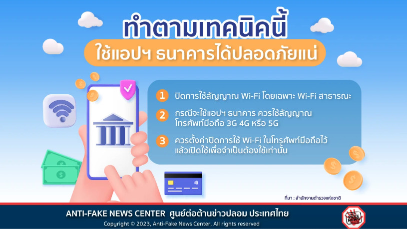 การใช้ Wi-Fi ในพื้นที่สาธารณะ เป็นอะไรที่สุ่มเสี่ยงมากต่อโทรศัพท์ของเรา ซึ่งมิจฉาชีพอาจแฝงตัว ทำการแ