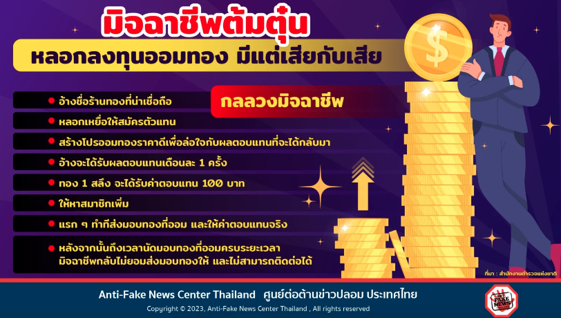 เตือนภัยนักลงทุนทั้งหลาย ระวังเจอมิจฉาชีพต้มตุ๋น หลอกให้ลงทุนออมทอง แม้จะไม่ใช่แชร์ลูกโซ่ แต่กระบวนก