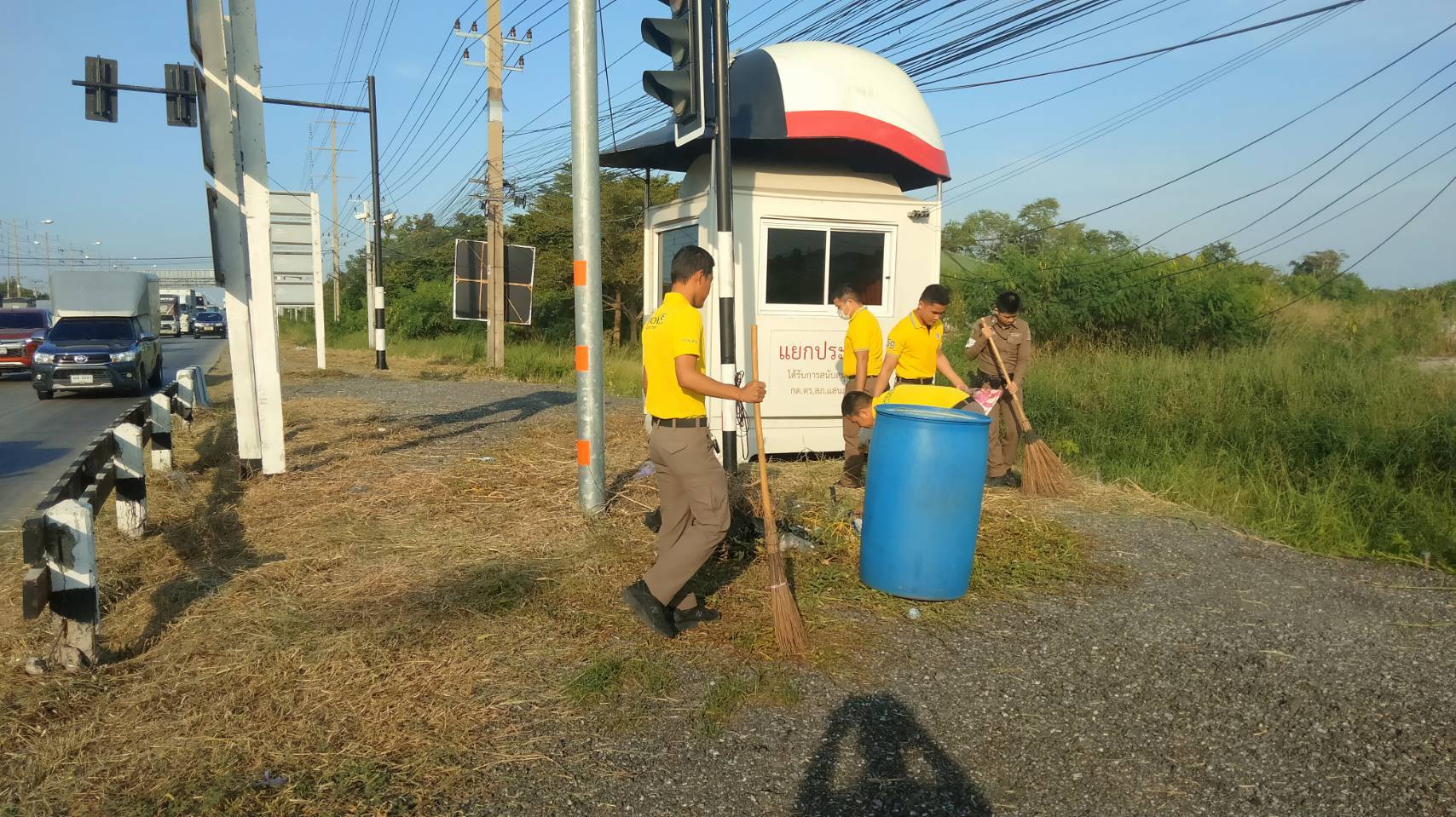 งานจราจร สภ.แสนภูดาษ ร่วมปรับปรุงพัฒนาบริเวณจุดบริการประชาชนแยกประเวศ
