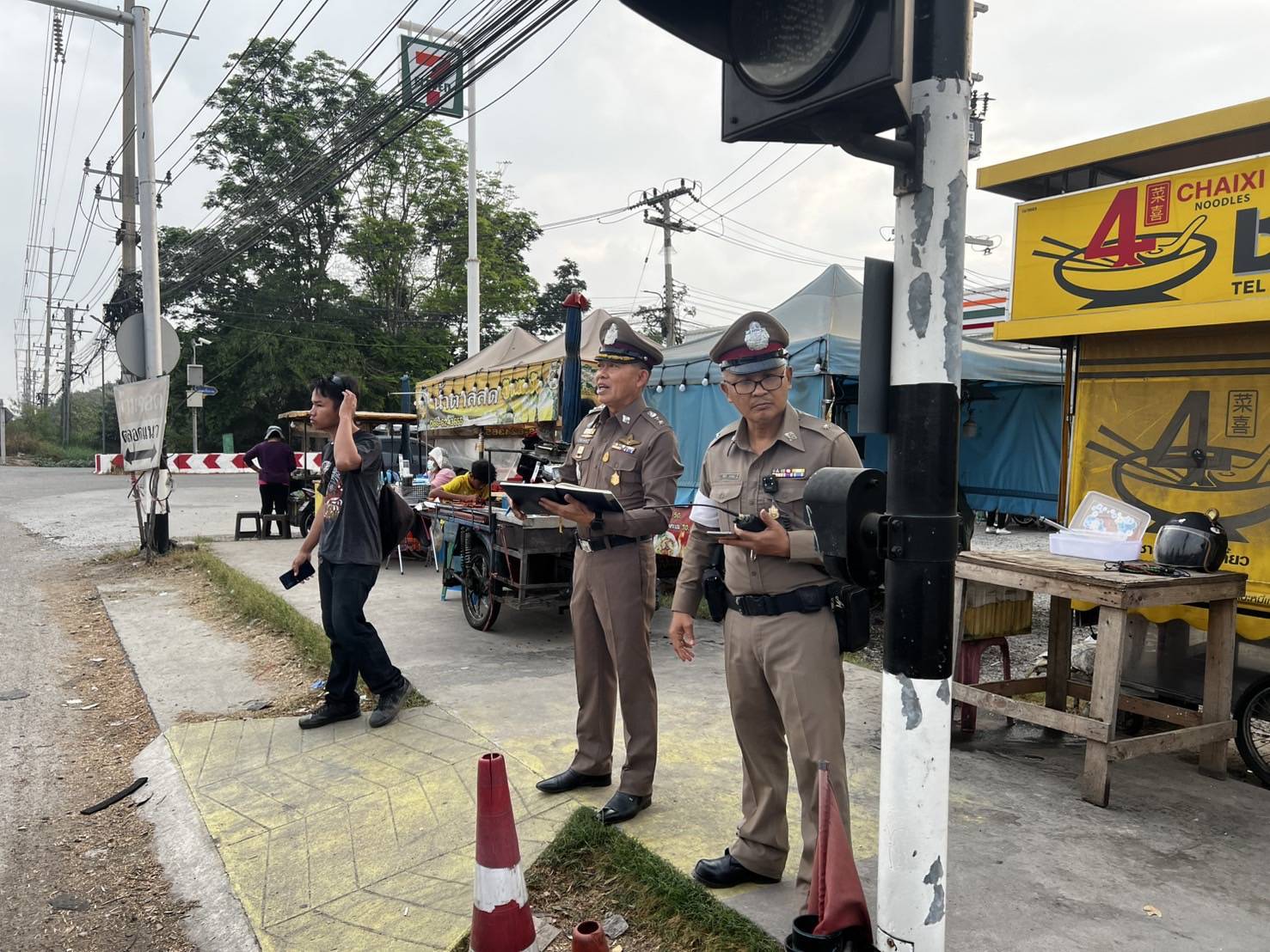 งานจราจรตั้งจุดสกัดกวดขัยวินัยจราจร บริเวณถนน 3005 หน้าgood fortune ต.ลาดขวาง อ.บ้านโพธิ์ ฯ
