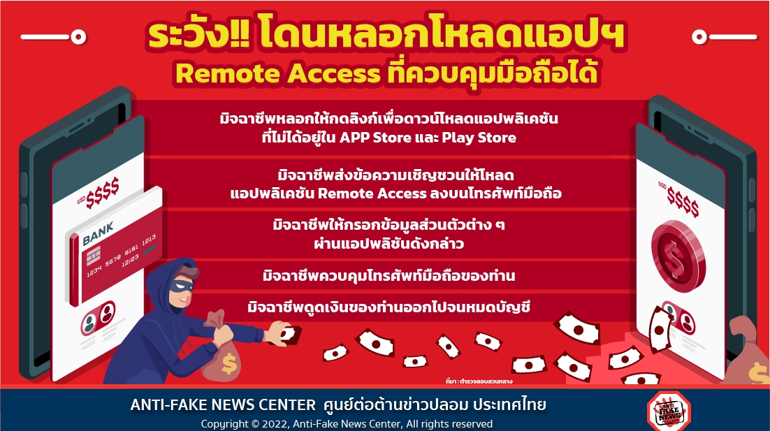 ระวัง!! โดนหลอกโหลดแอปฯ Remote Access ที่ควบคุมมือถือได้