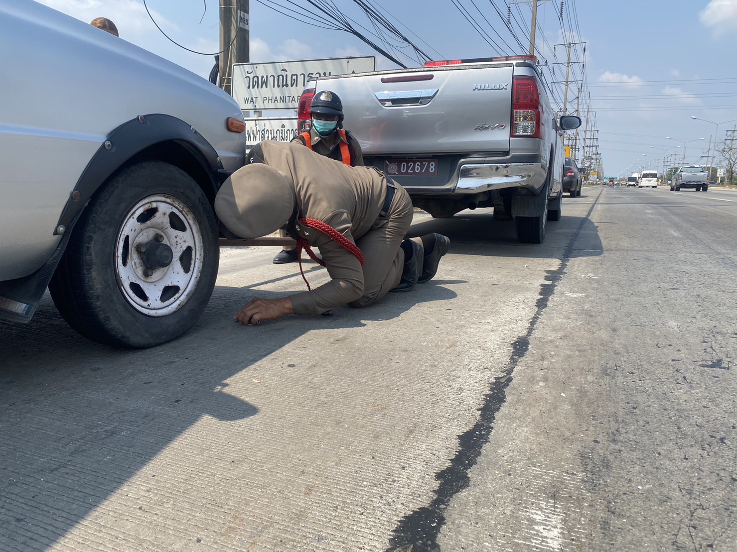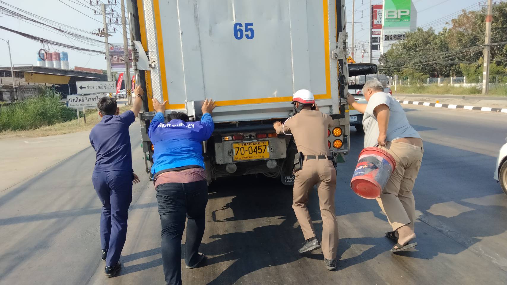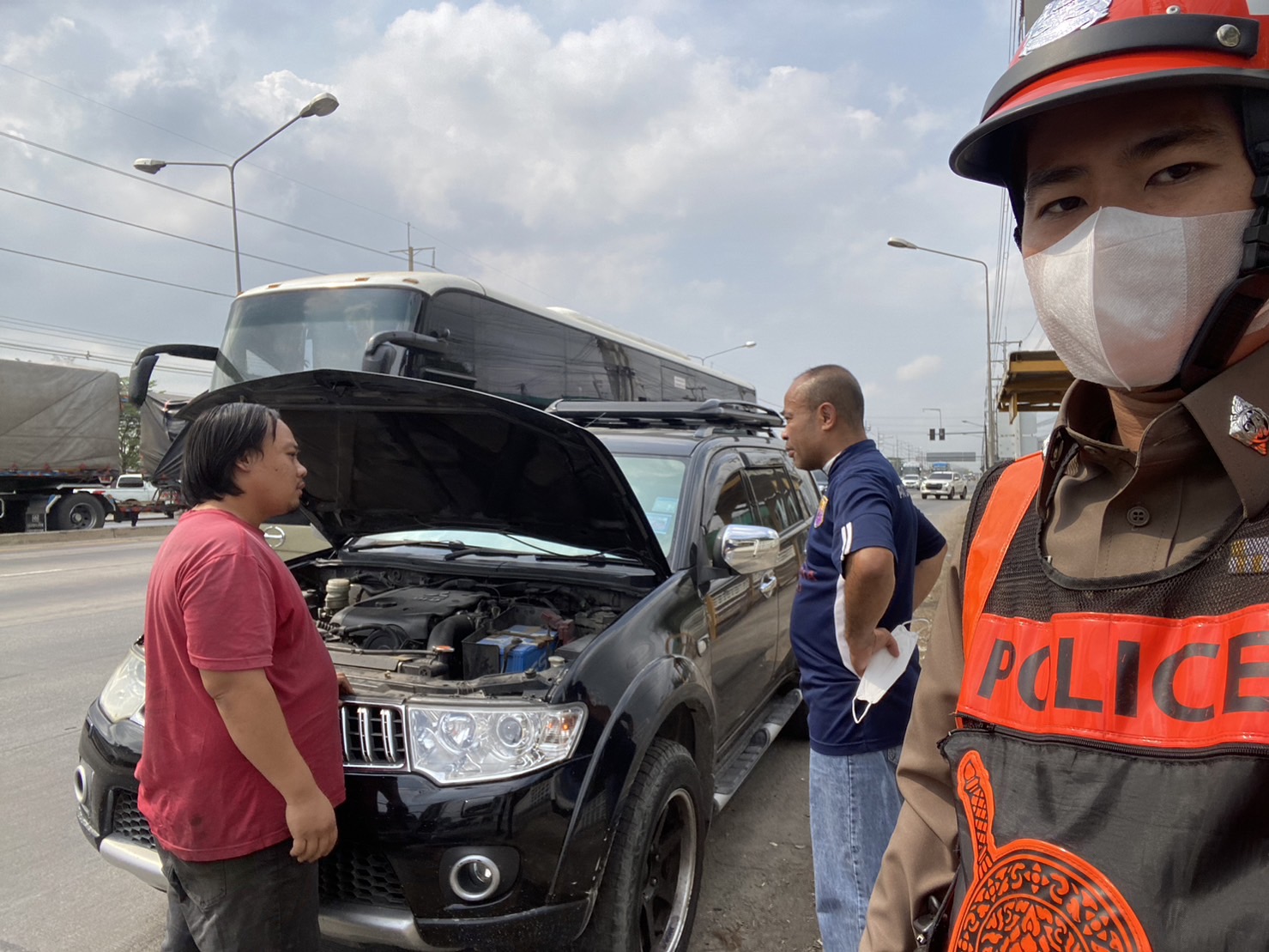 ตร.แสนภูดาษ ช่วยเหลือประชาชนรถน้ำมันหมดพาเข้าชิดขอบทางเพื่อไม่กีดขวางทางจราจร