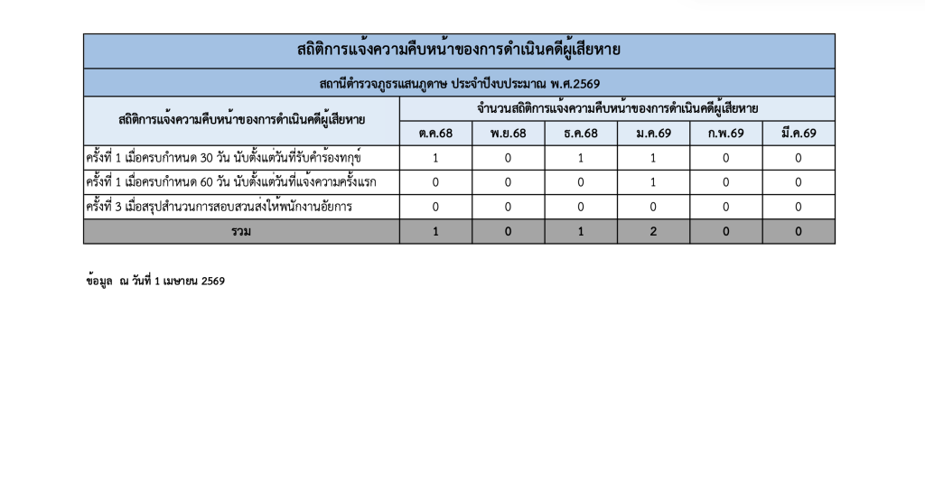 สถิติการแจ้งความคืบหน้าของการดำเนินคดีผู้เสียหาย